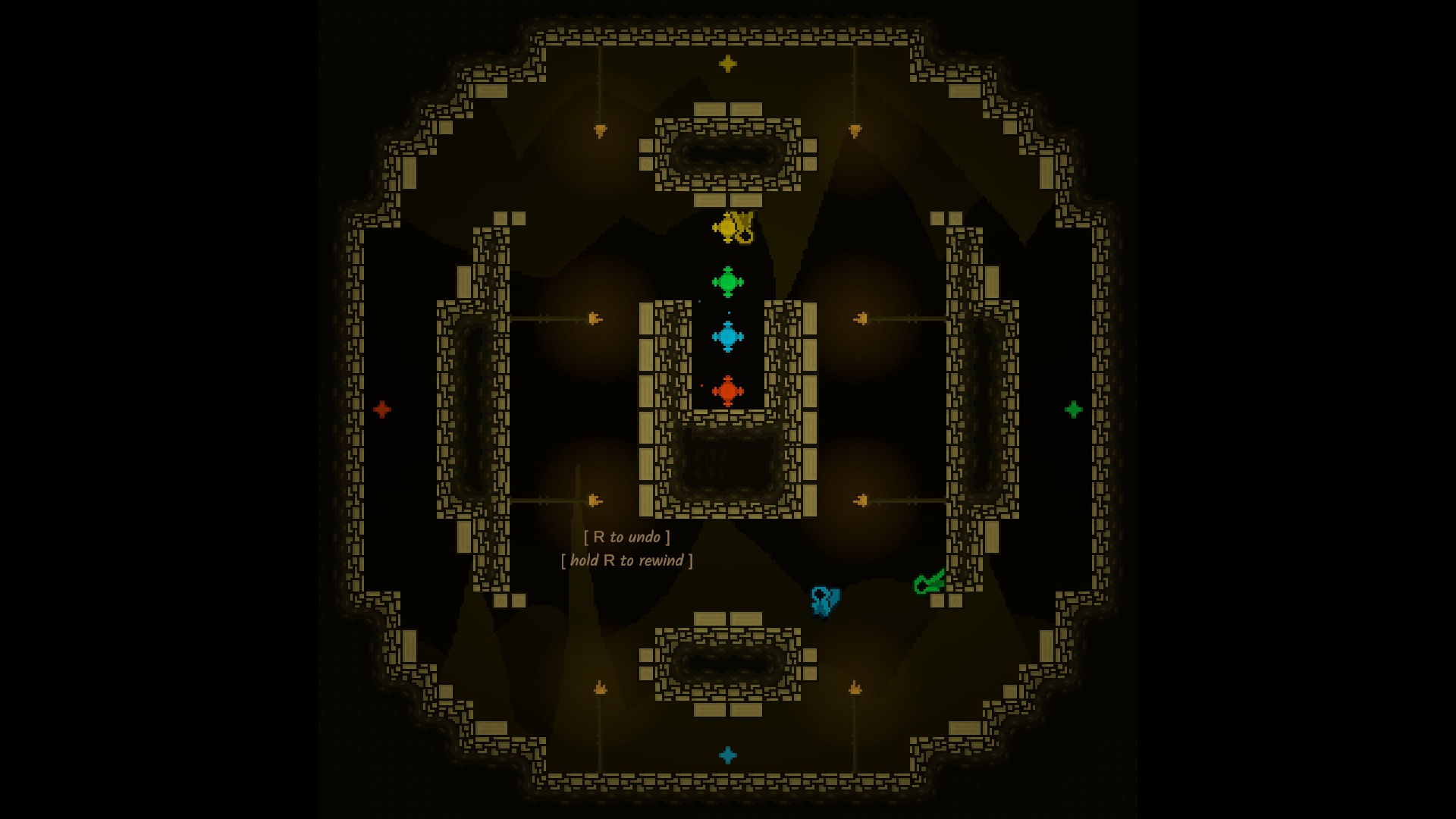 A puzzle platformer where past selves work with the future ones in a rotating temple